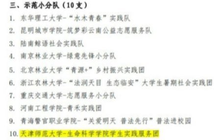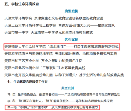 近期,天津师范大学生命科学学院在生态环境科普宣传、实践育人、志愿服务等领域的多项评选中斩获佳绩,充分展现了学院师生在服务生态文明建设中的主动担当与扎实成效。