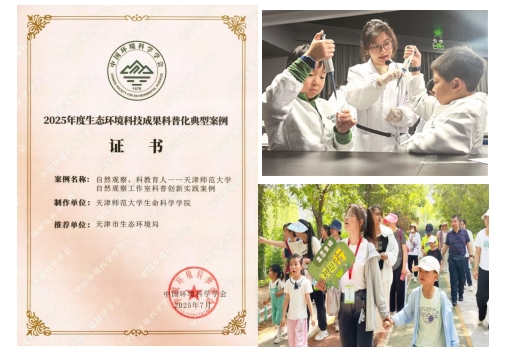 “自然观察,科教育人——天津师范大学自然观察工作室科普创新实践”案例成功获评由中国环境科学学会评选的2025年度生态环境科技成果科普化典型案例。以“观察自然奥秘,讲述生命故事,共建绿色家园”为宗旨,自然观察工作室立足学校生态记忆展馆,面向大中小学开展近千场的科普讲授,将校园打造为开放的生态科普“大讲堂”,累计已有超过6000人次志愿者参与其中,在科普实践中展现出蓬勃的风采与力量。