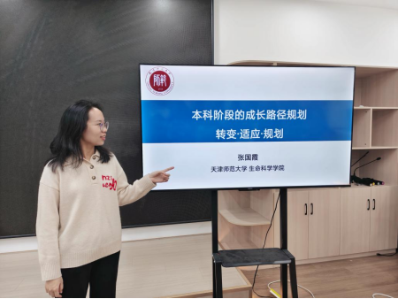 接着,张老师回顾了自己在科研瓶颈、学业压力下的挑战与坚持,指出正是凭借清晰的目标规划与稳定的学习节奏,才一步步实现突破。她勉励同学们:大学是探索自我的黄金期,既要脚踏实地学好专业知识,打牢根基;也要科学制定阶段性目标,找到专属节奏,避免盲目内耗。她特别叮嘱,遇到困难要主动寻求老师、同学帮助,在交流协作中磨砺成长,不负韶华。